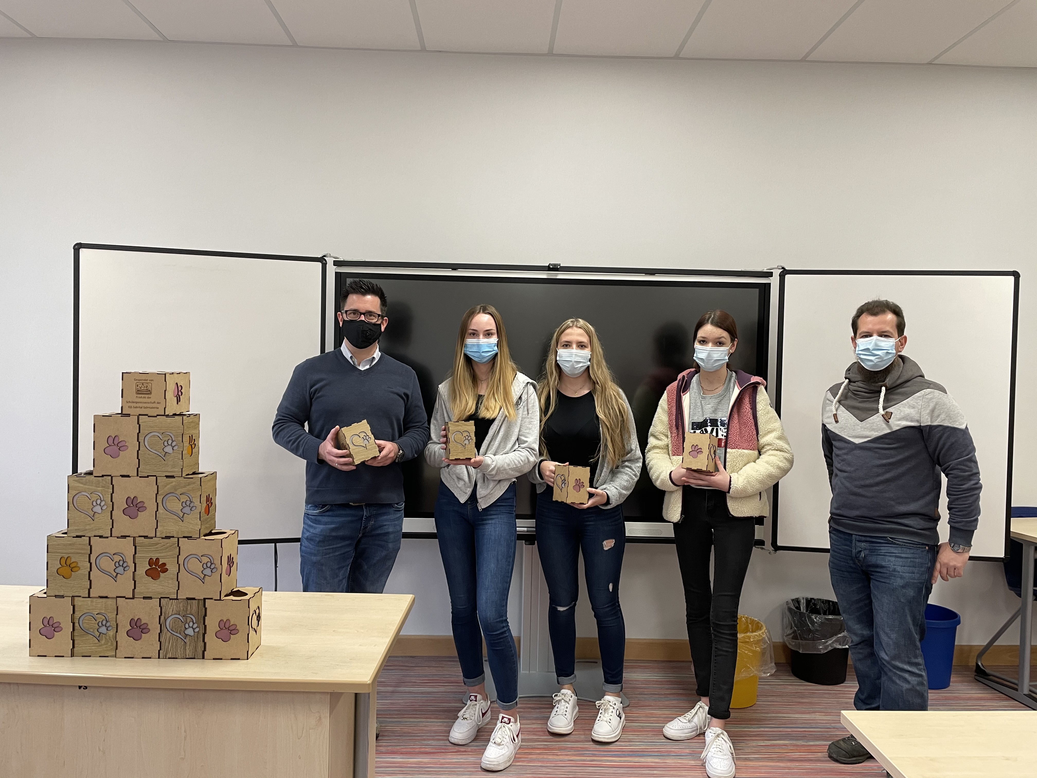 Am 23. April besuchten Herr Kordel (Eifeltierheim Altrich) und Frau Zimmer (Förderverein Eifeltierheim) die Tierschutzgruppe der IGS Salmtal. Bei verschiedenen Aktionen sammelten die Schülerinnen stolze 1000 Euro für den Tierschutz, die sie zu gleichen Teilen an die beiden Organisationen spendeten.