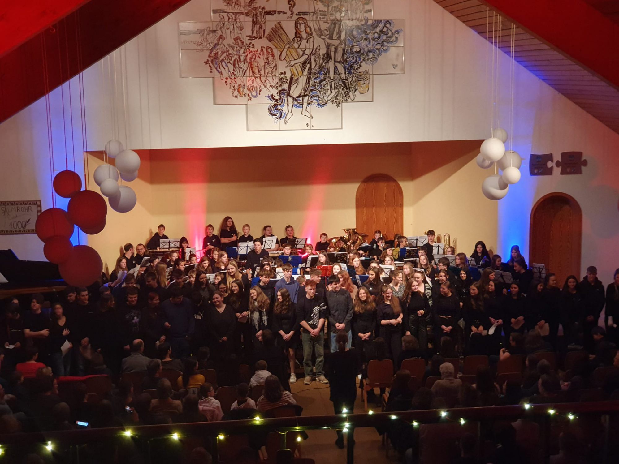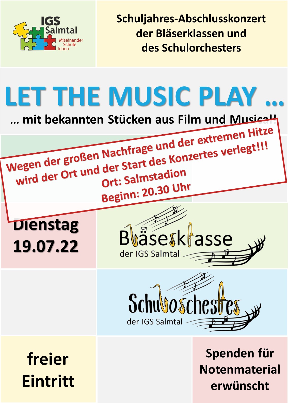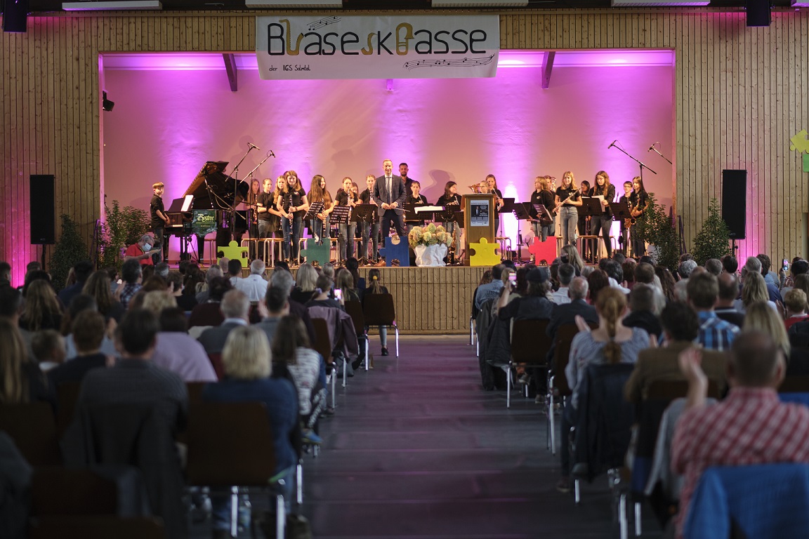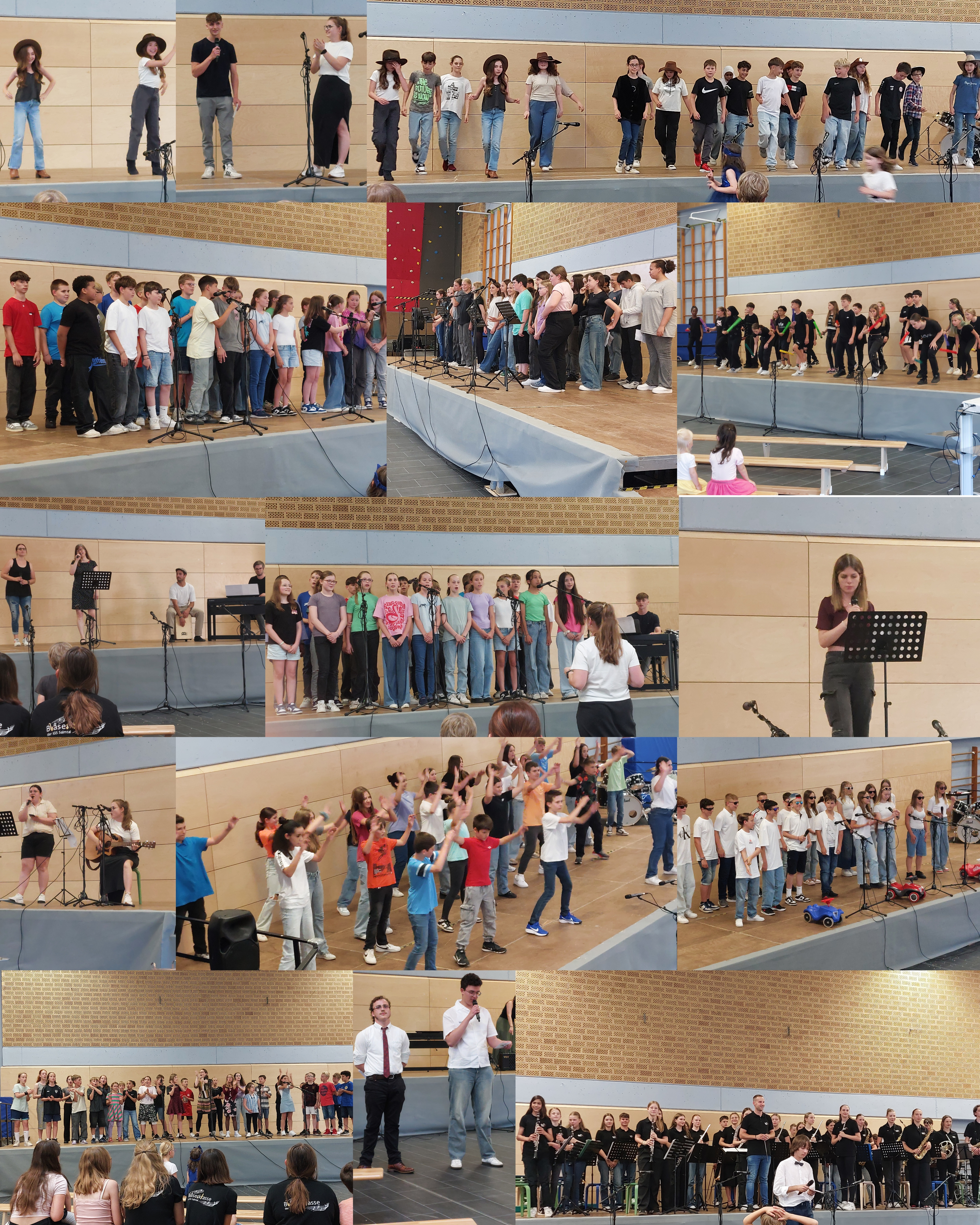 Am 11. Juli fand das alljährliche Sommerkonzert der IGS Salmtal statt. In über zwei Stunden wurde ein abwechslungsreiches und buntes Programm von Gesang über Tanz und Orchestermusik geboten. „Mamma Mia“ - ertönte es unter anderem von der Bläserklasse des 6. Jahrganges unter der Leitung von Herrn Högner. Mit weiteren Stücken zeigten sie wieder, was sie innerhalb kürzester Zeit erlernt haben. Im nächsten Schuljahr werden viele von ihnen das Schulorchester verstärken, das das Publikum an diesem Abend ebenfalls mit seinem hohen musikalischen Niveau mit Stücken wie „Barbie Girl“ und „Counting Stars“ überzeugen konnte. Einzel- und Gruppendarbietungen aus insgesamt 9 Klassen begeisterten an diesem Abend mit tollen Gesangs- und Tanzeinlagen, die sie mit ihren Musiklehrkräften einstudiert hatten. Besonders mutig waren diejenigen Schülerinnen und Schüler, die sich allein oder zu zweit auf die Bühne wagten. So konnte man „A Million Dreams“ und „This is me“ aus The Greatest Showman genießen oder bei „Cotton Eye Joe“, „Texas Hold Em“ und „Happy“ kräftig mitklatschen. Beeindruckt wurden die Gäste auch von der Lehrkräfteband JamIGS, die zum ersten Mal auftrat. Moderiert wurde der Abend von drei Schülern aus Jahrgangsstufe 12, die wortgewandt und charmant durch den rundum gelungenen Abend führten, der allen Anwesenden noch lange im Gedächtnis bleiben wird.