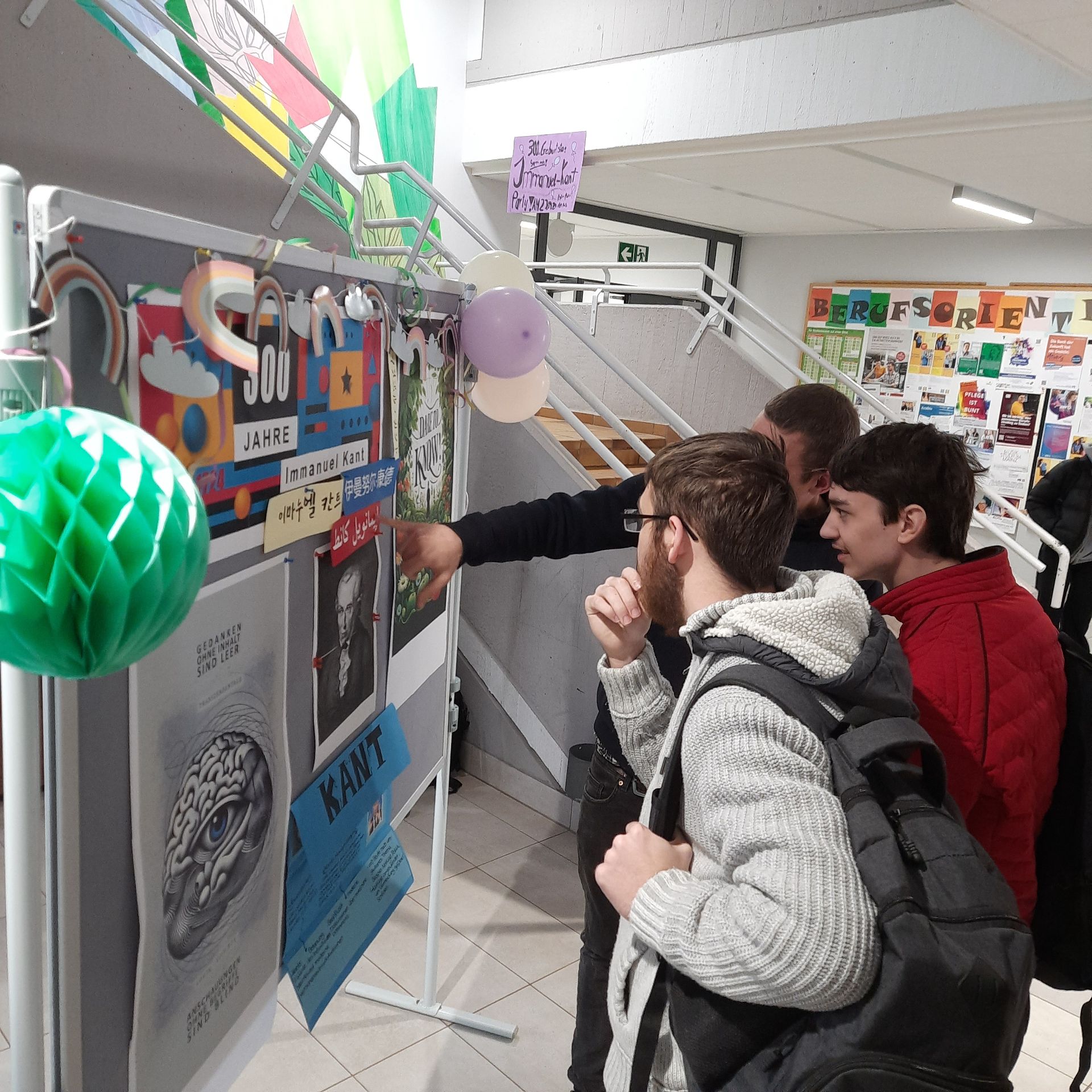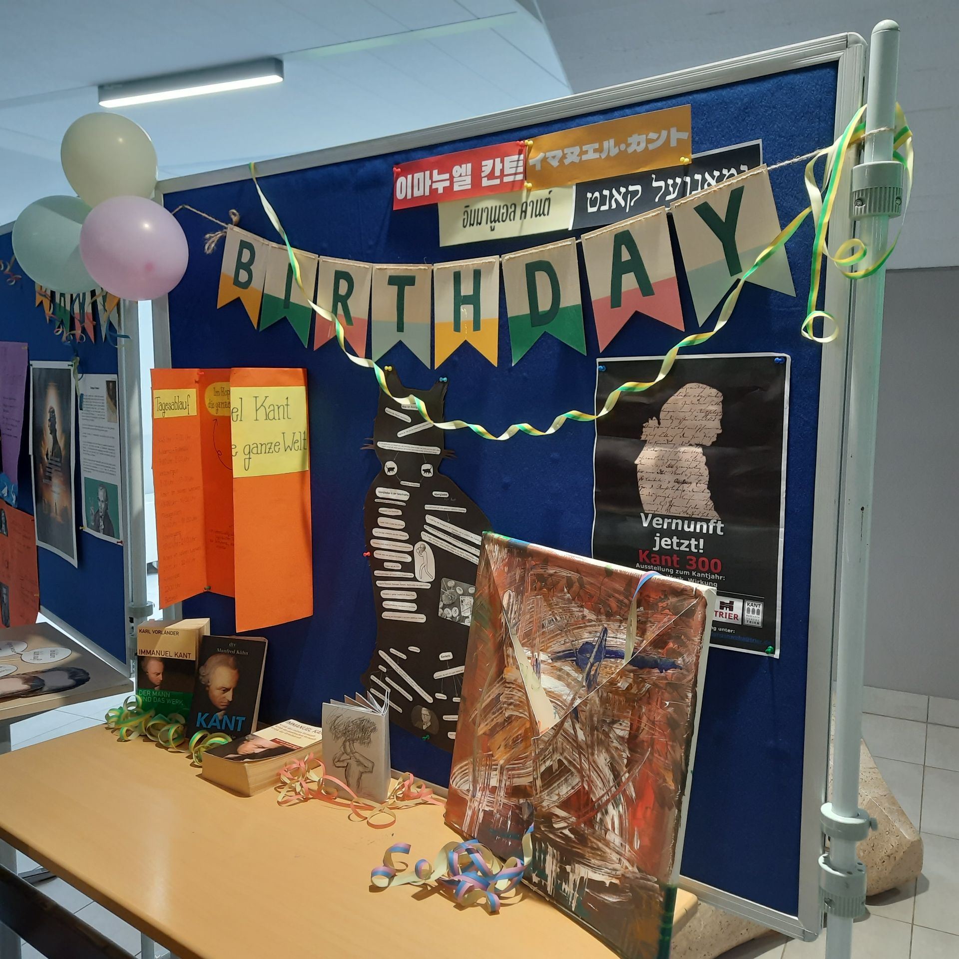 Immanuel Kant, einer der bedeutendsten Philosophen Deutschlands, wurde am 22.04.1724 geboren und damit am 22.04.2024 300 Jahre alt. Dieses besondere Jubiläum feierte die IGS Salmtal mit einer kleinen Ausstellung. Schon lange im Vorhinein beschäftigten sich die unterschiedlichsten Klassenstufen und Kurse mit der Philosophie Kants. Des Weiteren arbeiteten einige Gruppen die unterschiedlichsten Themenbereiche, die es zu Kant gibt, als Plakate kreativ aus. Der Schülerschaft wurde Kants Philosophie mit spannenden Präsentationen und interessanten Ausstellungen nähergebracht. Diese zeigten die aktuelle Relevanz seiner Philosophie und Ethik für uns heute auf. Beispielhaft erklärte ein Vortrag Kants großen Einfluss auf unser Grundgesetz und Handeln. Die IGS Salmtal gibt sich sehr viel Mühe allen Schülern auch noch heute geschichtlich als auch philosophisch bedeutungsvolle Themen zu vermitteln.
