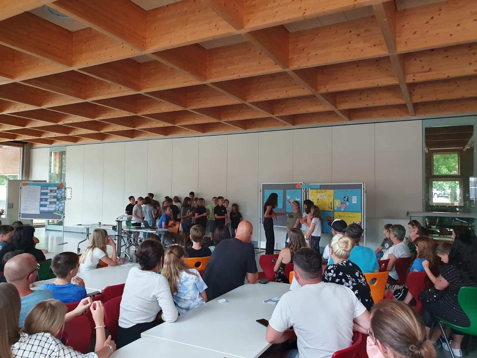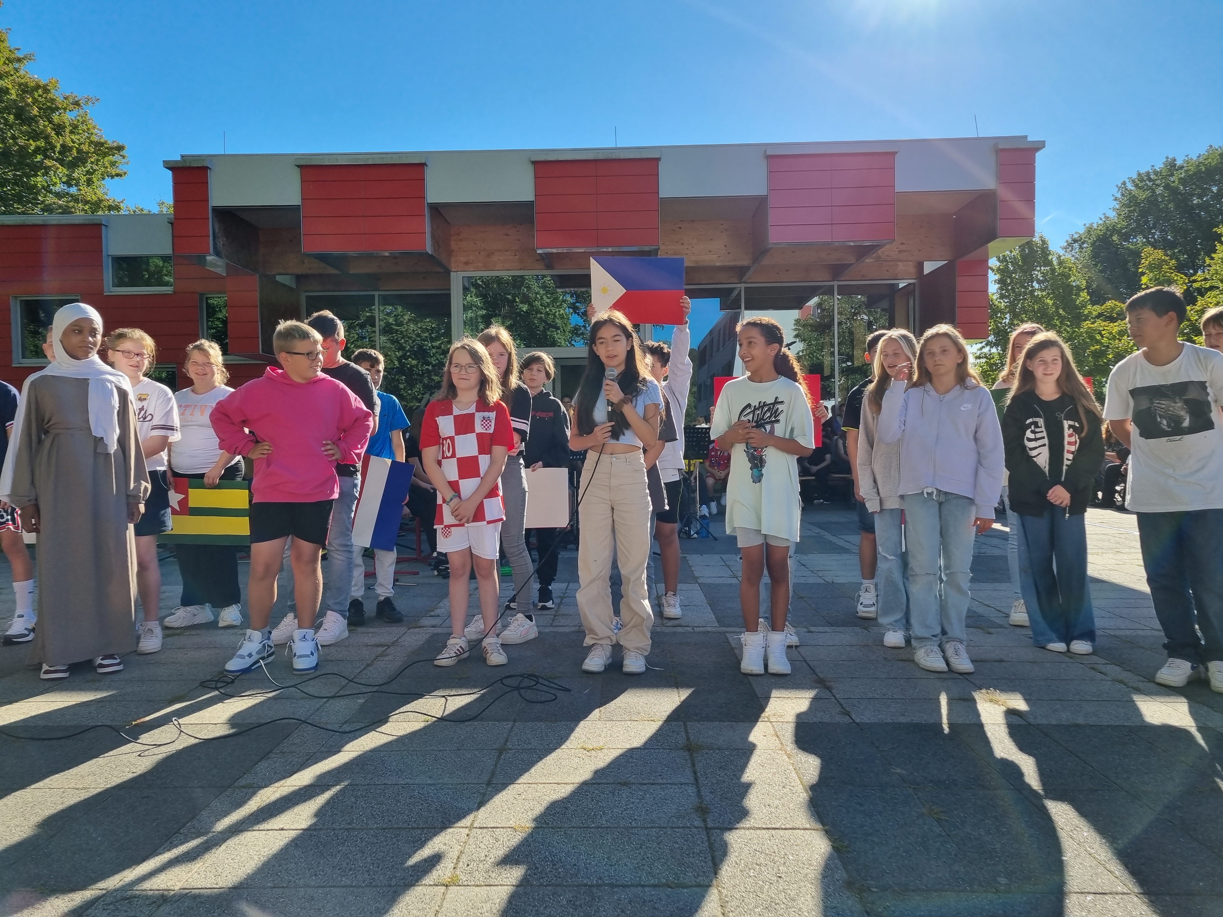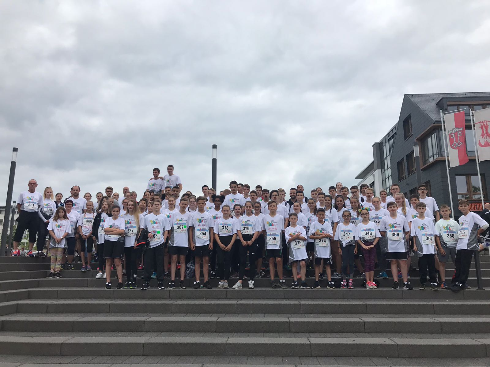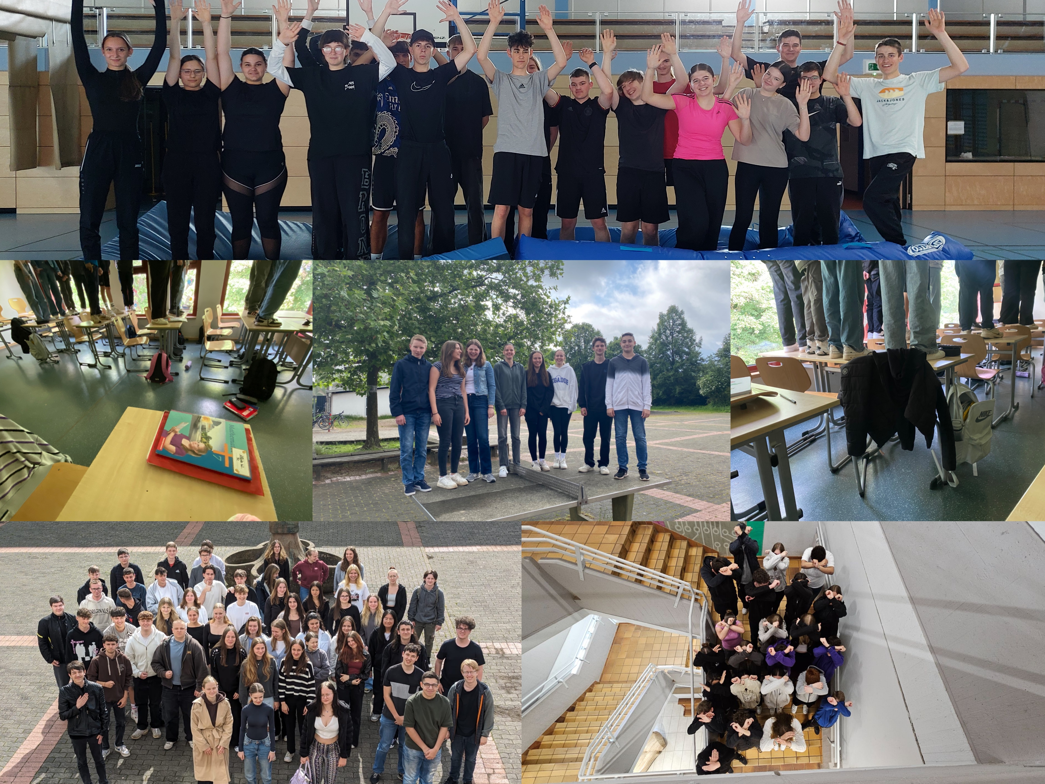 Schulen als Orte zum Erlernen von Demokratiebewusstsein und einem respektvollen Umgang miteinander werden immer wichtiger. Dies wurde umso deutlicher, als dass bei den diesjährigen Europawahlen zum ersten Mal auch 16-jährige wählen durften. An der IGS Salmtal wurde anlässlich dessen, wie an vielen anderen Schulen auch, die Juniorwahl durchgeführt. Im Vorfeld beschäftigten sich die 9. und 10. Klassen intensiv mit Europa und der Europäischen Union. Auch feiert das Grundgesetz in diesem Jahr 75. Geburtstag. Aufgrund dieser Ereignisse nahm die IGS Salmtal im Juni an der Mitmach-Aktion #IchStehAuf teil, bei der Schulen ein Zeichen für Vielfalt und Demokratie setzen konnten. Und das Aufstehen war in diesem Fall wörtlich zu nehmen, da die Schülerinnen und Schüler auf Tischen, Turnmatten, dem Schulhof oder im Treppenhaus für demokratische Werte aufgestanden sind.