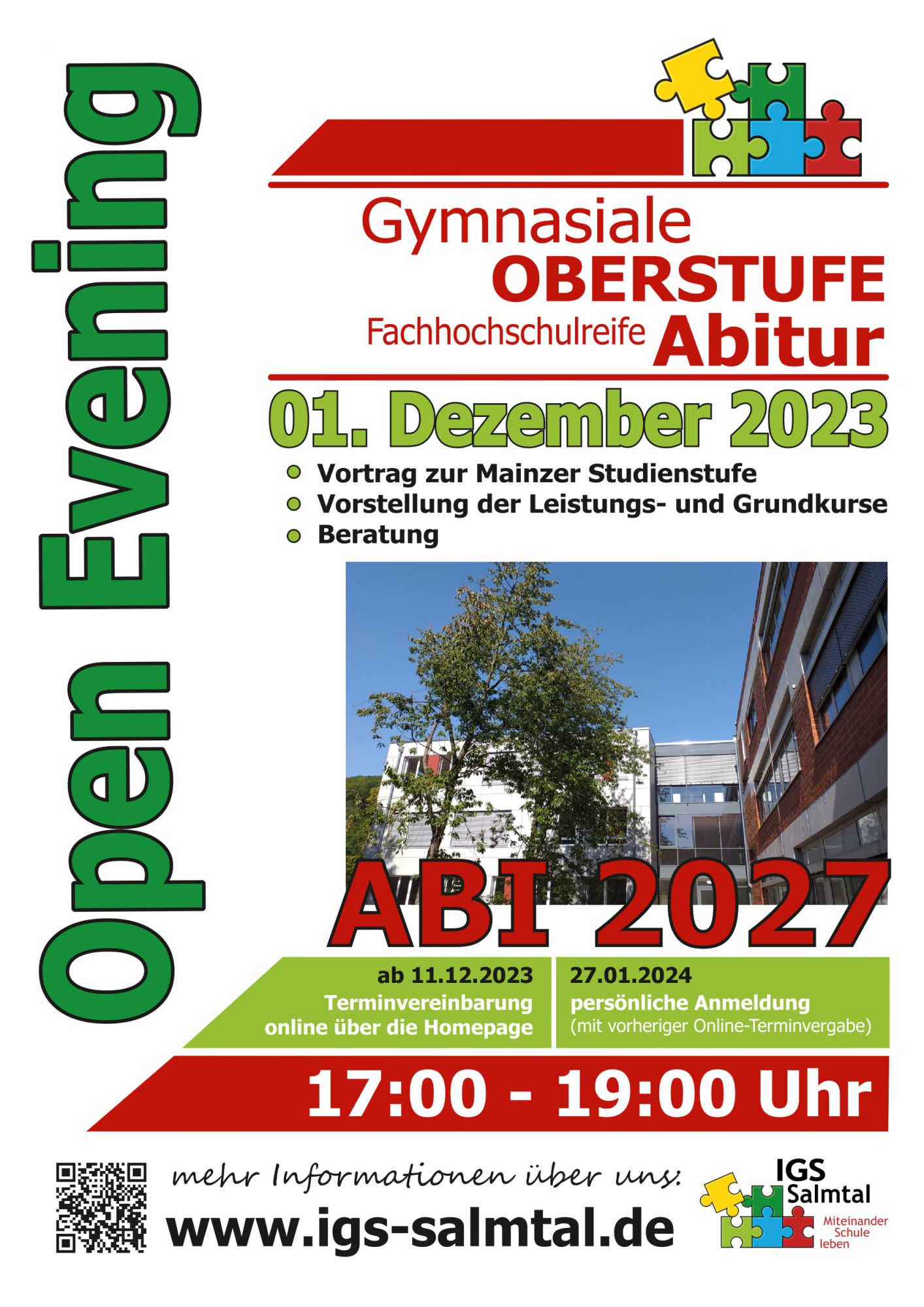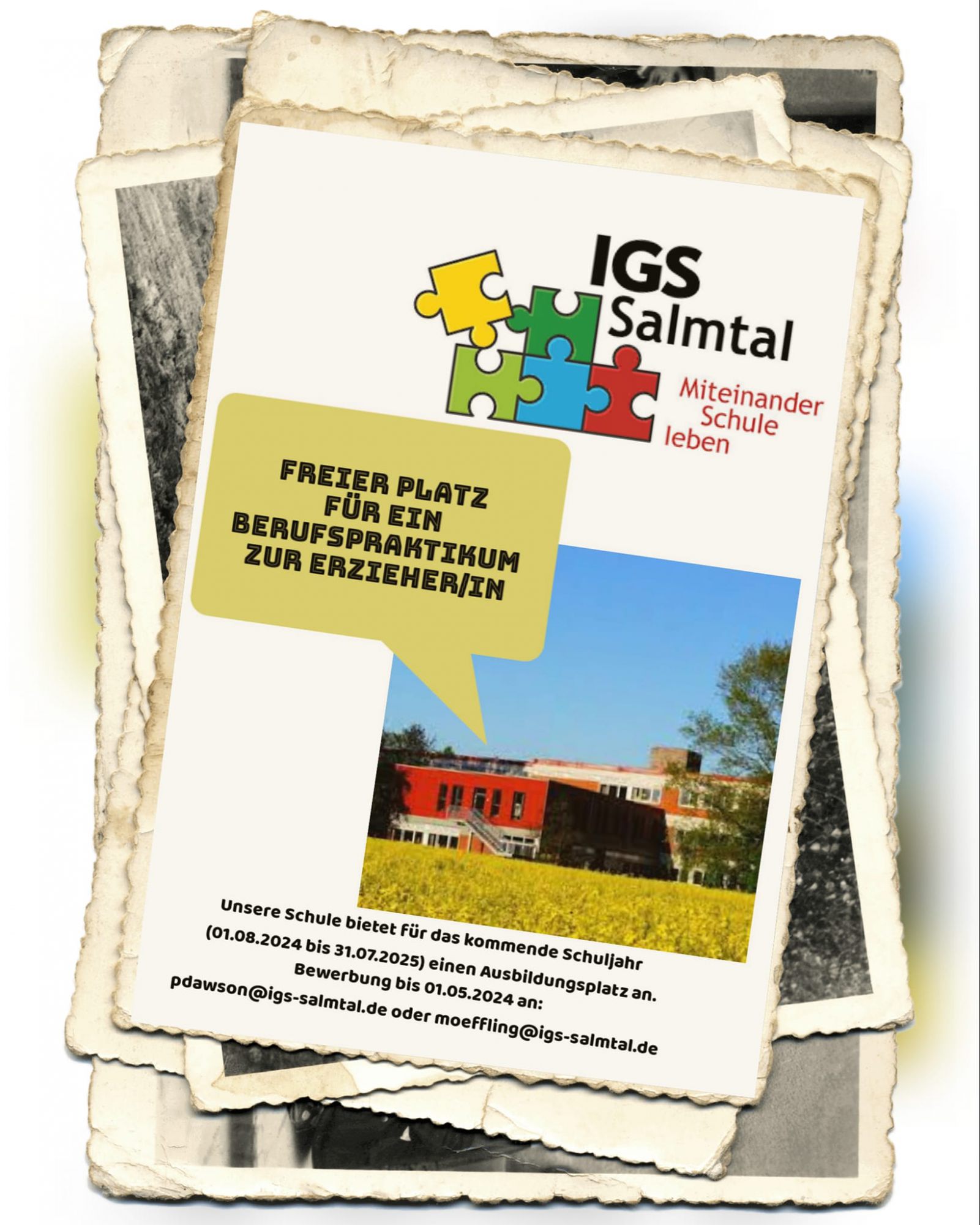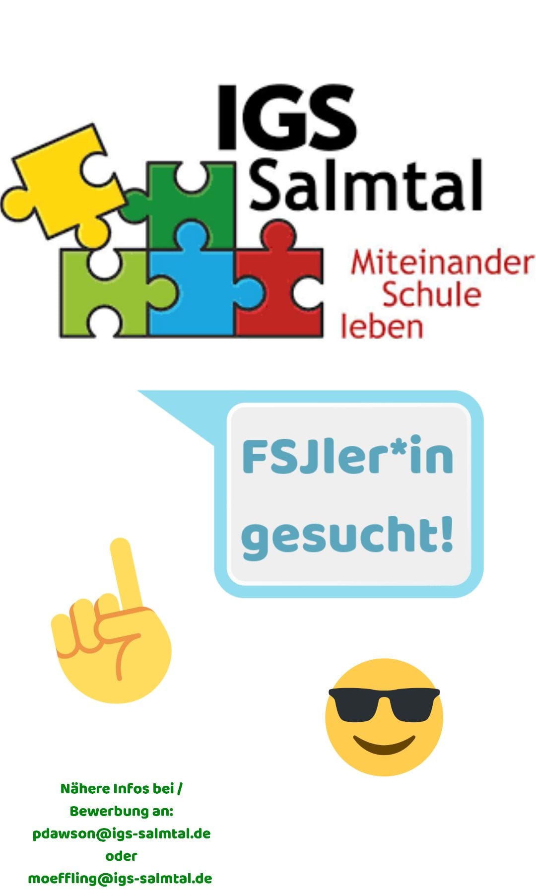 Die IGS Salmtal bietet auch im kommenden Schuljahr 2024/2025 wieder Plätze zum Absolvieren eines Freiwilligen Sozialen Jahrs und einen Platz für ein Praktikum zur Erzieher:in an. Bis zum 01. Mai 2024 können sich Interessierte an der Integrierten Gesamtschule Salmtal dafür bewerben.