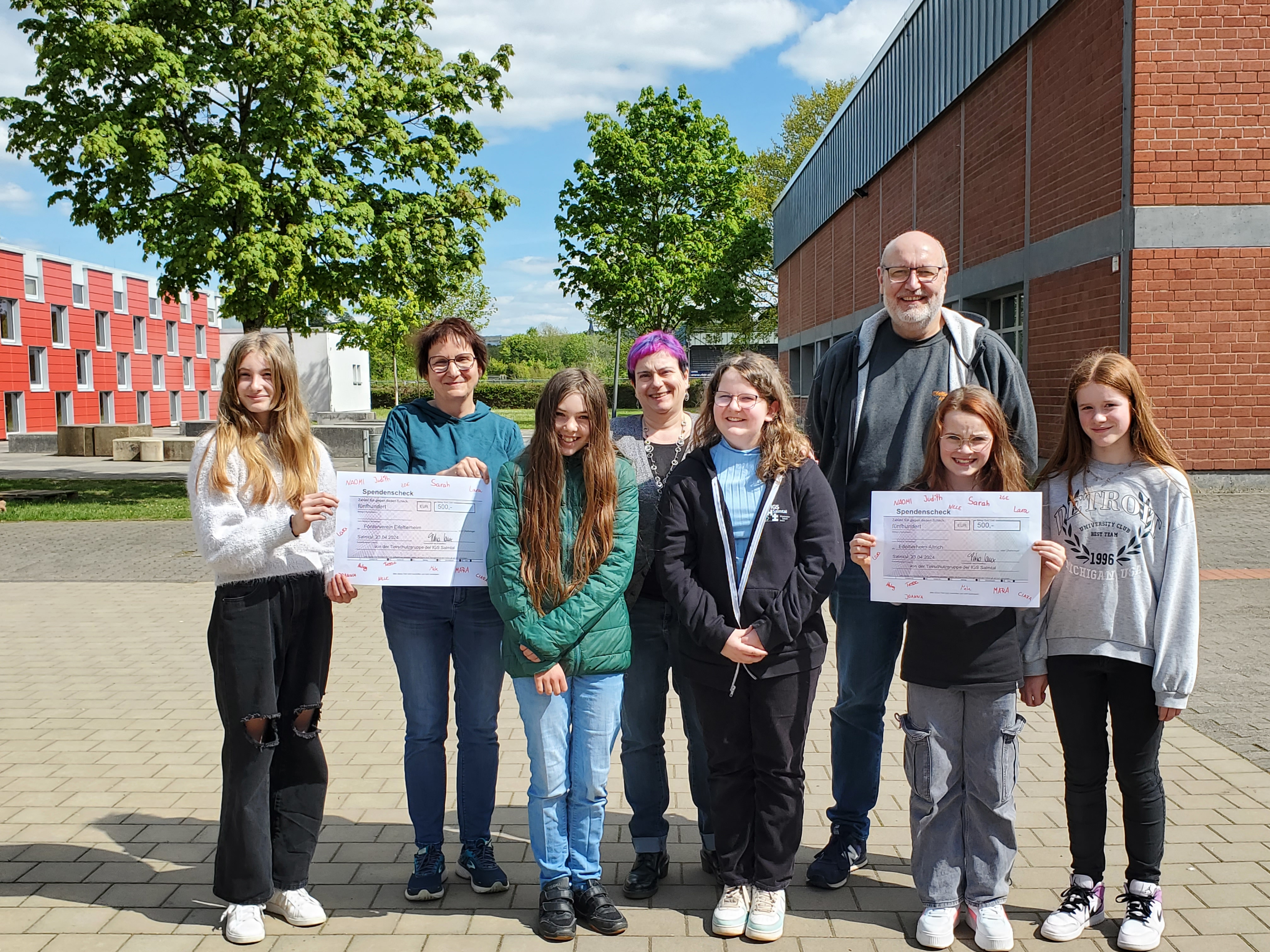 Am 23. April besuchten Herr Kordel (Eifeltierheim Altrich) und Frau Zimmer (Förderverein Eifeltierheim) die Tierschutzgruppe der IGS Salmtal. Bei verschiedenen Aktionen sammelten die Schülerinnen stolze 1000 Euro für den Tierschutz, die sie zu gleichen Teilen an die beiden Organisationen spendeten.