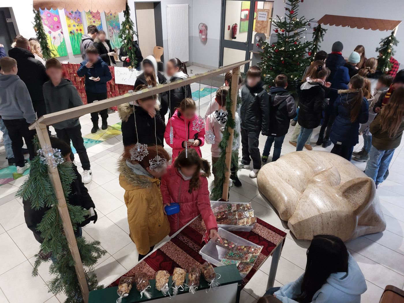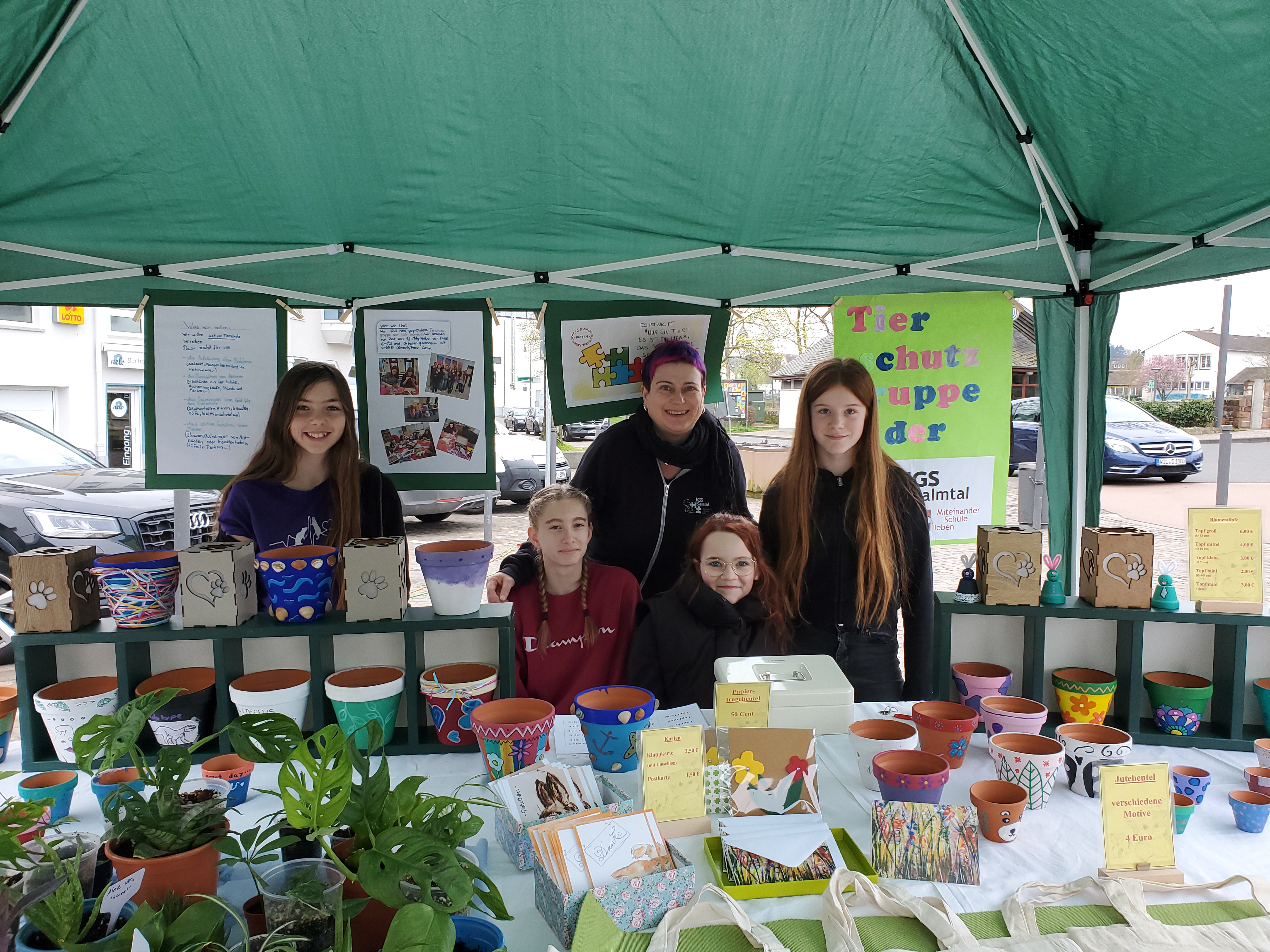 Der Verkauf auf dem Wittlicher Wochenmarkt am Freitag, den 22.03.24 war unsere erste gemeinsame Aktion. In den letzten Wochen haben wir uns in unserer Freizeit getroffen, um Blumentöpfe mit Frühlings- und Ostermotiven zu bemalen und zu gestalten.