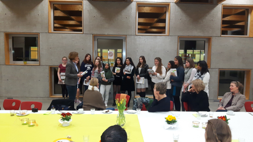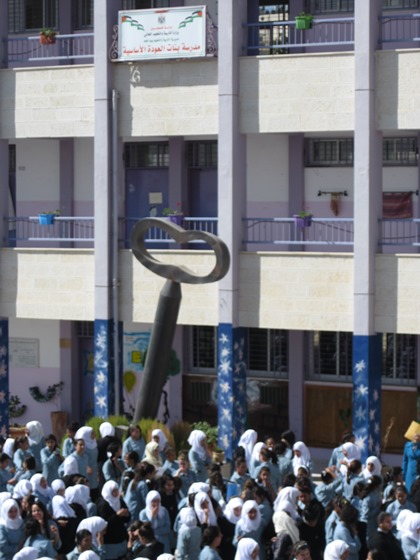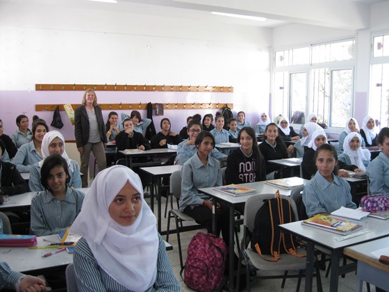 In diesen Herbstferien brach unsere Lehrerin Bettina von Oppeln zu einer ganz besonderen Reise auf. Das Ziel war Palästina, ein Land welches offiziell gar nicht existiert seitdem es den Staat Israel gibt. Trotzdem leben dort viele Kinder und gehen wie hier zur Schule in einer Stadt deren Namen uns allen wohlbekannt ist: Bethlehem. Dort, in unserer UNESCO Partnerschule Al-Awda, besuchte Bettina von Oppeln die beiden Deutschlehrerinnen Haifa Awad und Julia Mali und natürlich die vielen Schülerinnen die dort deutsch lernen. Der Name Al-Awda bedeutet „Schlüssel“ und so hängt auch ein großer symbolischer Schlüssel über dem Hof, auf dem sich die Schülerinnen nach der großen Pause in Reihen aufstellen müssen. Die Al-Awda Schule ist eine reine Mädchenschule und auf den ersten Blick geht es dort sehr diszipliniert und ordentlich zu. Die Schülerinnen tragen Schuluniform, manche haben ein Kopftuch, andere nicht. Aber wenn man dann in die Klassenzimmer geht, merkt man dass es ganz normale Teenager sind, genauso wie hier in Deutschland. Sie sind lustig und auch manchmal eigensinnig, quatschen durcheinander und haben ihre eigenen Träume. Übrigens leben in Palästina Christen und Muslime sehr friedlich miteinander. Frau von Oppeln brachte Briefe und Bilder der Schule in Salmtal als Geschenk mit, darauf geschrieben stand: „Grüße aus Deutschland“ in Deutsch, Englisch und auf Arabisch. Aber es gab auch ein Geschenk zurück: nämlich ein Kalender auf Deutsch welcher von Schülerinnen gestaltet wurde: Die Schönheit Palästinas. Jetzt wird mit Eifer ein Schüleraustausch geplant. Gedacht ist an einen Besuch von vielleicht fünf Schülerinnen der Al-Awda Schule nach Salmtal. Dies ist gar nicht so einfach, da die Bewohner Palästinas über Jordanien ausreisen müssen. Eine komplizierte und auch teure Reise. Da die Al-Awda Schule keine Privatschule ist mit reichen Eltern, werden wir versuchen die Schülerinnen mit Fördergeldern zu unterstützen.